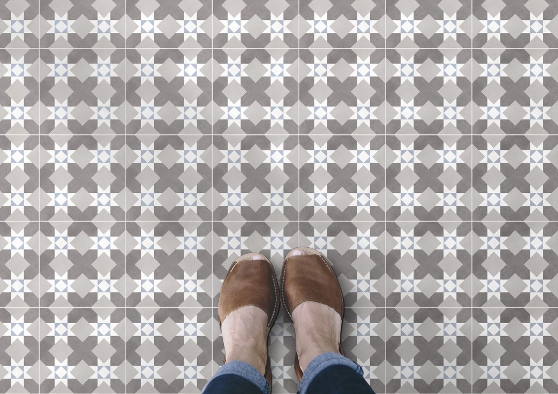 Traditional Barcelona Motifs in small format with matching plain tiles.